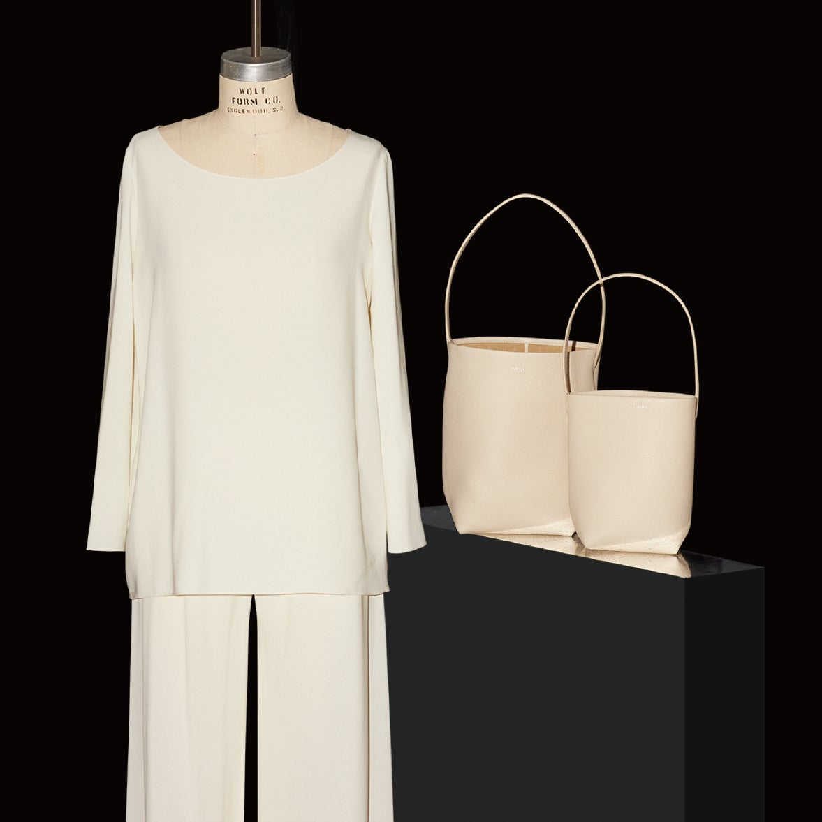 ミニマルで洗練されたワードローブを展開する<ザ・ロウ>。今回ウィメンズのエッセンシャルモデルである“GALA PANTS”から大人のエレガンスが漂うやわらかなアイボリーがバーニーズ ニューヨーク限定カラーとして登場いたします。共生地で同色のトップスとセットアップでお召しいただくと、さらにエレガントで洗練された着こなしに。また、しなやかで艶のあるグレインレザーを使用した“N/S PARK TOTE”シリーズから既存のラインにはないシャンパンカラーをご用意いたしました。豊富なサイズ展開で、ユニセックスでお使いただけます。