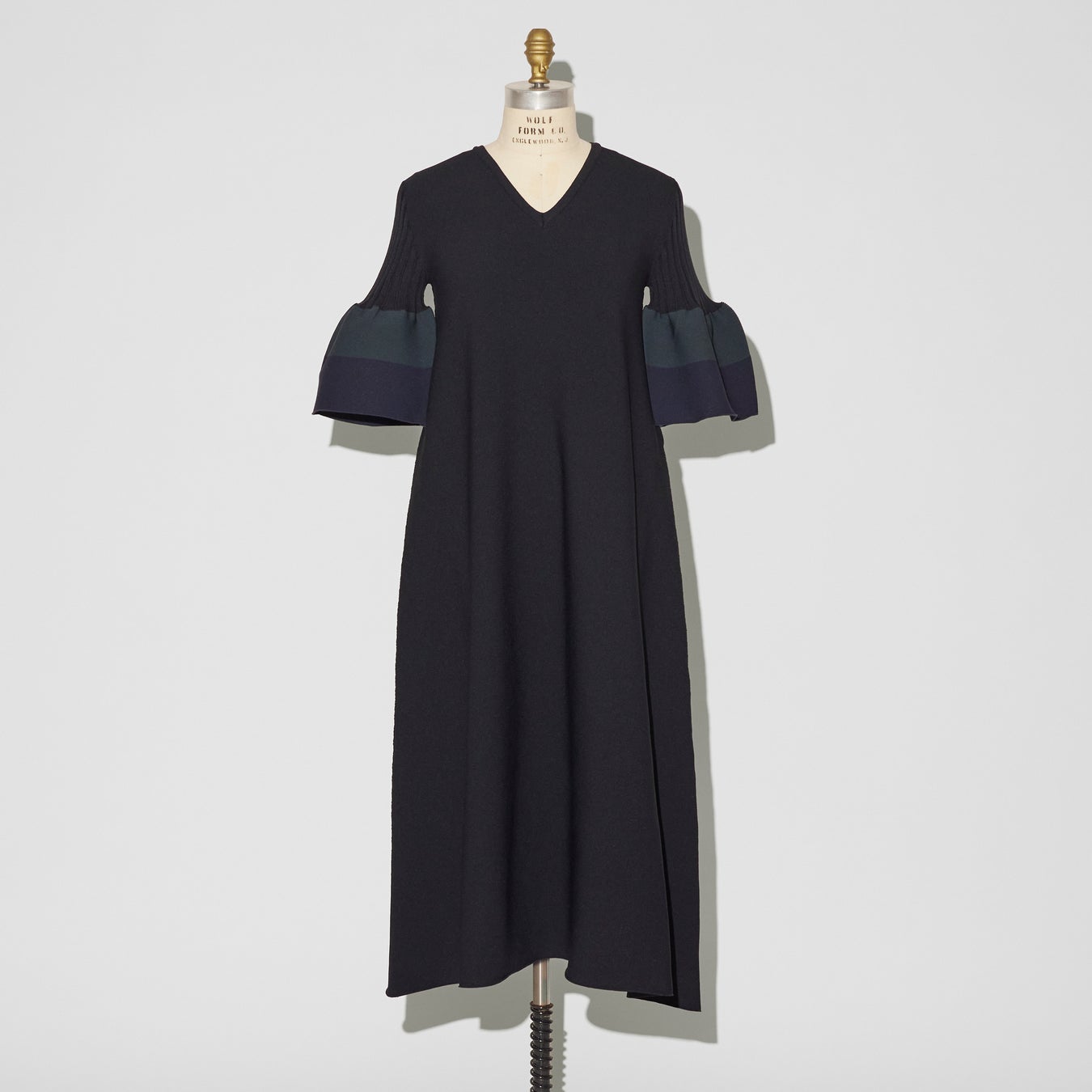 モダンでサステナブルなウェアを提案する日本のブランド<シーエフシーエル>。3Dコンピューター・ニッティングの高い技術によって生まれたウィメンズのアイコニックなニットドレス“POTTERY KAFTAN”は、丸みのある優雅なシルエットが特徴です。バーニーズ ニューヨーク創業100周年を記念した限定のカラーリングは、ブラックのベースカラーに、袖部分にグレーとネイビーを配した大人の女性にふさわしいエレガントな印象のもの。包み込まれるようなリラクシィな着心地とは裏腹に、スタイリッシュで洗練された佇まいが完成します。