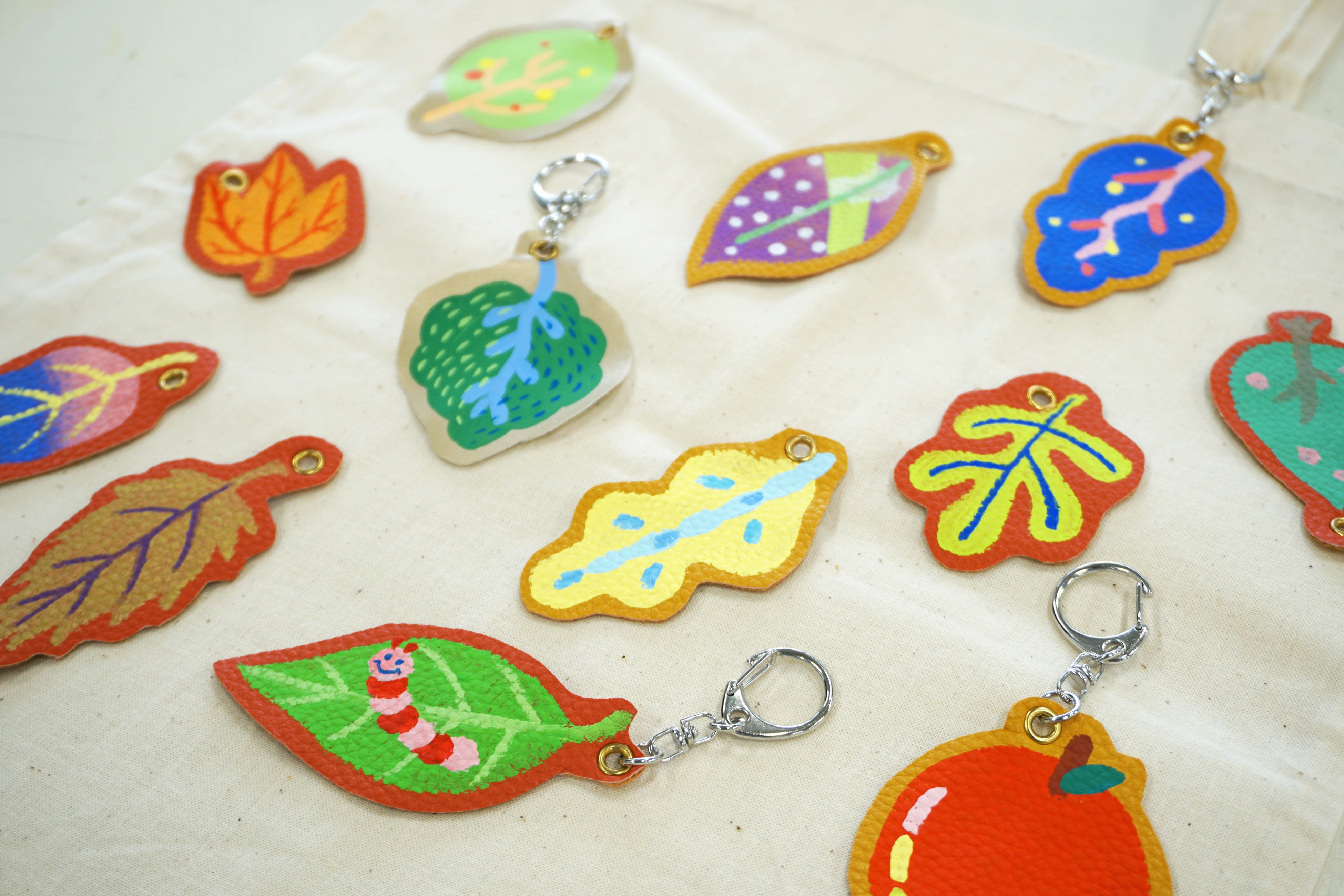 絵本の読み聞かせと、様々な葉っぱを使った『おおきな木』のキーホルダーやチャーム作りを行います。