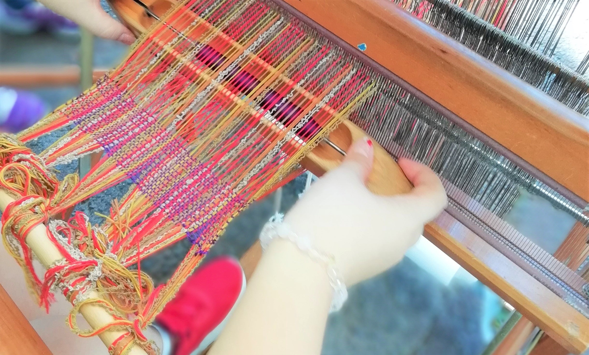障がいのある人が織り手として活躍する国内でも珍しい手織り工房「ひょうたんカフェ」が登場。足踏み式織機を使ったティーマット作りを体験できます。