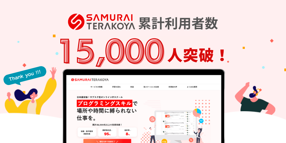 サブスク型IT研修サービス「侍テラコヤ」累計利用者数15,000人を突破!