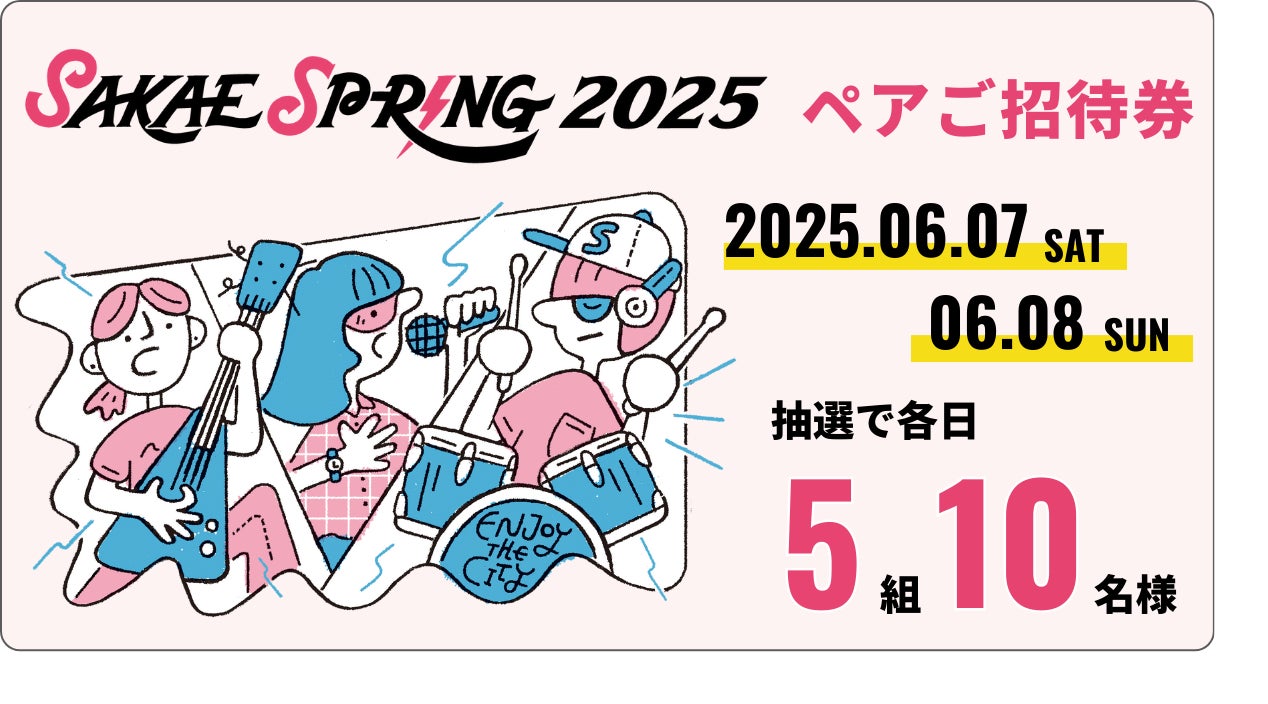 そしてこの度、「SAKAE SP-RING 2025」と「DAM」とのコラボキャンペーンが、4月14日(月)よりスタートします。本キャンペーンでは、東海3県(愛知県・岐阜県・三重県)のカラオケルーム内に設置されている『LIVE DAM WAO!(4月18日以降)、LIVE DAM Aiシリーズ、LIVE DAM STADIUMシリーズおよびLIVE DAMシリーズ』で、「SAKAE SP-RING 2025」出演アーティストの対象楽曲を歌い応募された方の中から、抽選で合計10組20名様(各日5組10名様)に「SAKAE SP-RING 2025」ペアご招待券をプレゼント!