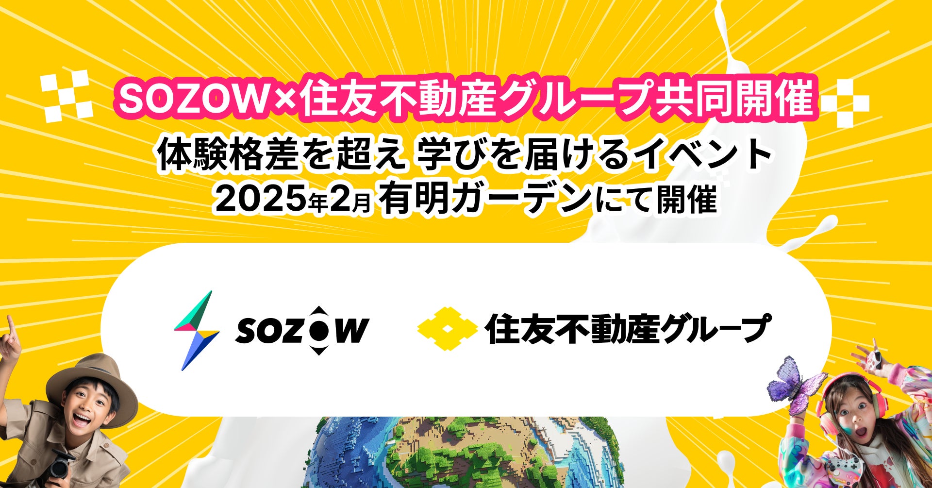 テクノロジーとエデュテイメント(教育×エンターテインメント)を活用した教育事業を展開するSOZOW株式会社(所在地:東京都品川区、代表取締役:小助川 将)は、住友不動産グループ(本社:東京都新宿区)と共同で、2025年2月11日(火・祝)に小学生向けの学びと体験の機会を広げるイベント「SOZOWフェス Tokyo 2025 Spring with 有明ガーデン」を開催します。