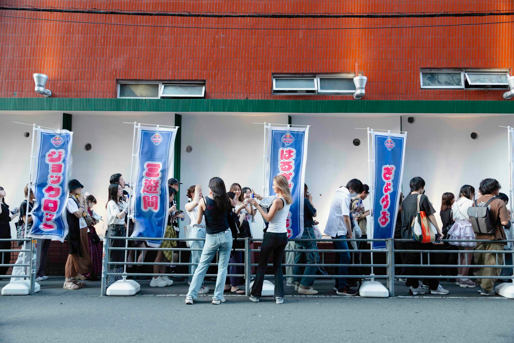 イベント当日、会場前には各演者のコンビ名が入ったのぼりが掲げられ、19時の開場を心待ちにする長蛇の列が。観客はみんなレッドブルを片手に、期待と興奮に満ちた表情を浮かべていた。
