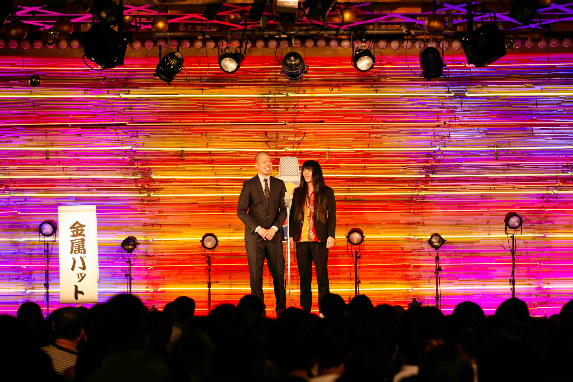 いよいよ大トリを飾る金属バット。ご両人が登場するや会場の熱気が爆発し、盛り上がりは最高潮に!誰もがステージに向かって手を振り、歓声を上げる、お笑いライブでは考えられない光景が広がる。