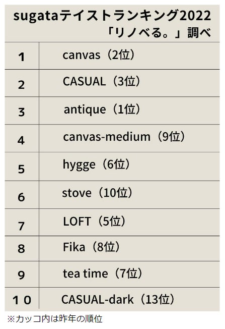 sugata」)」のユーザーデータから分析した「sugataテイストランキング2022」(リノベる。調べ)を発表します。