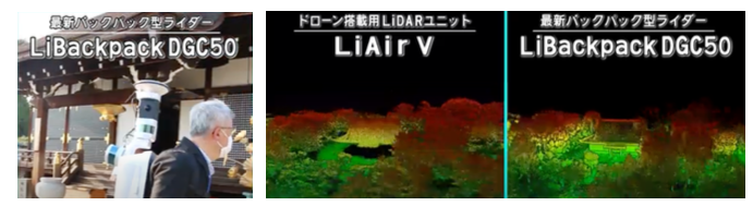 LiDARとはターゲットにレーザ光を照射してターゲットまでの距離を測定する測量方法で、高解像度の地図を作成する為に広く使われています。当社製品はバックパック型ユニットとなっており、歩いた場所の立体的な三次元の地図が 生成可能となります。