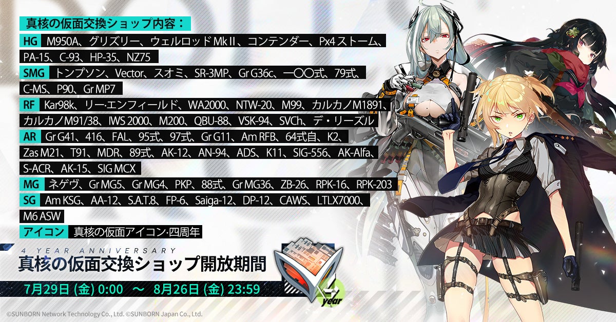 株式会社サンボーンジャパンは、スマホ向け戦略型シミュレーションゲーム『ドールズフロントライン(以下、「ドルフロ」)』は2018年8月1日のサービス開始から今年で4周年を迎えます。いつも応援してくださっている指揮官さまに、これまでの感謝を込めたキャンペーンやイベントを今年も開催することをお知らせいたします。