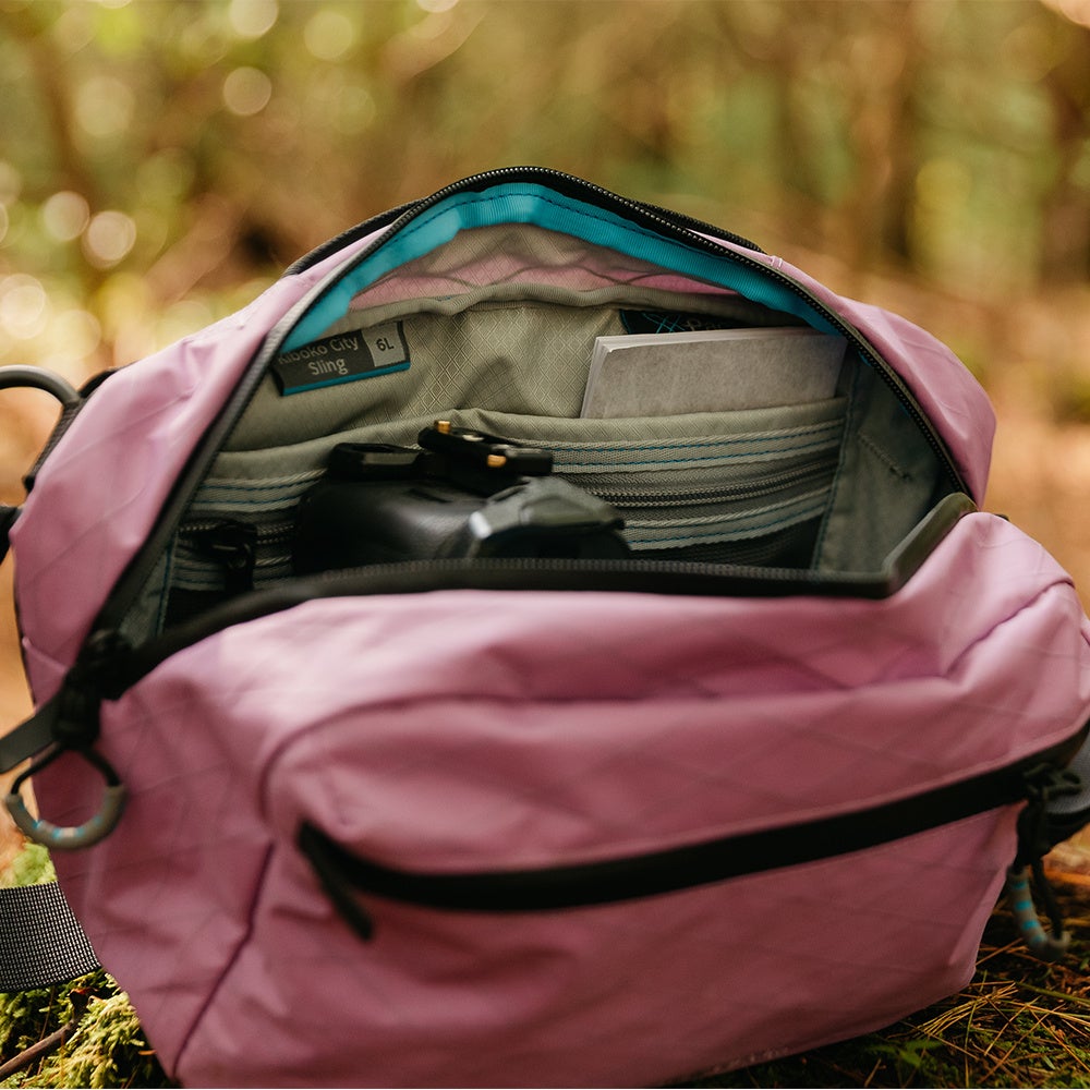 さらに、スリングバッグはグラギアのキボコ2.0シリーズ(22L、30L、30L+)のメインコンパートメント片側に収まるように設計されており、バックパックに収納して持ち運び、旅行や出張先でのサブバッグとしても活躍します。