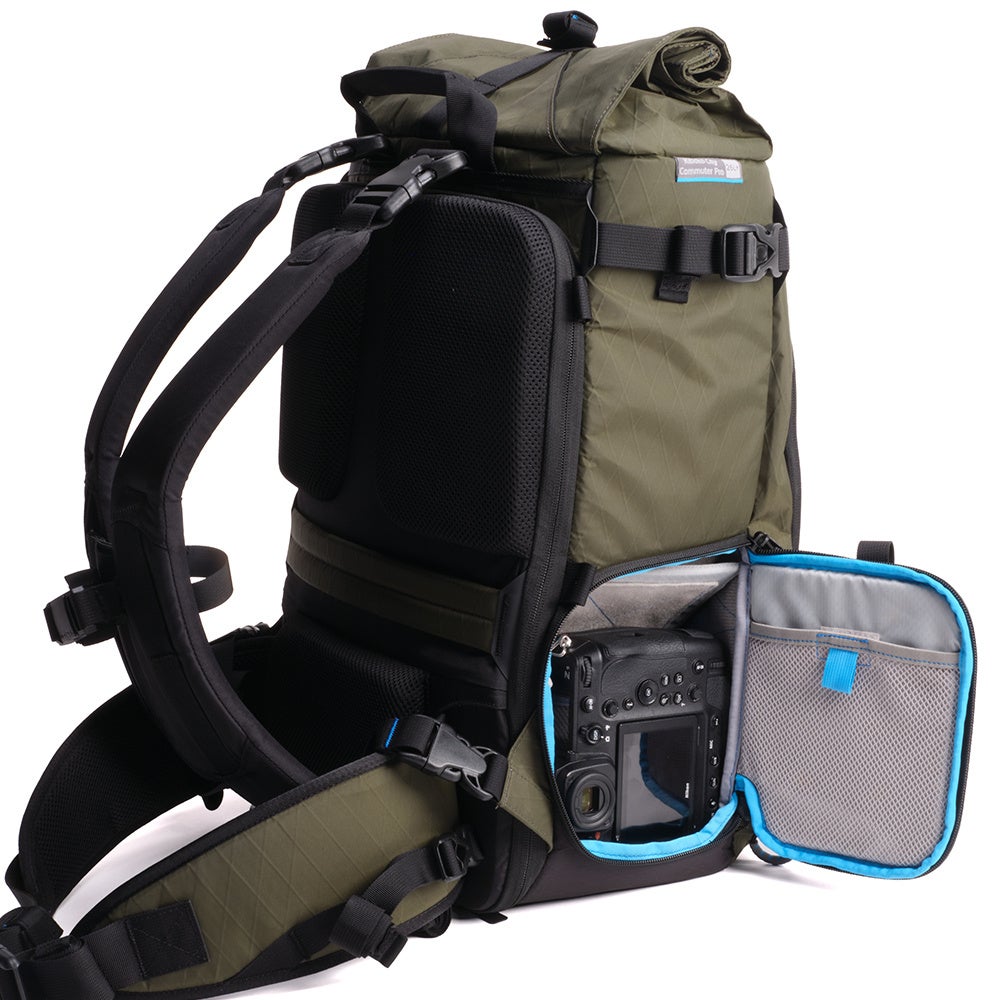 上部がロールトップ型の、多くの収納スペースを必要とするフォトグラファーのためのカメラバックパックです。発売中の「キボコシティ コミューター 18L+」をより深くし、大型の機材のほか毎日の必需品も快適に持ち運ぶことができます。