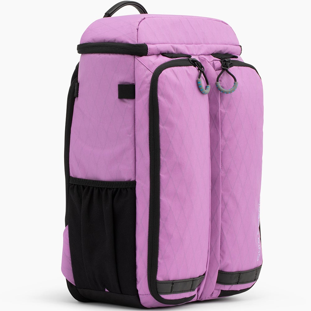 外側には軽量で撥水性・耐久性に優れたX-Pac VX-21生地を採用し、悪天候から機材を保護します(レインカバーも同梱)。