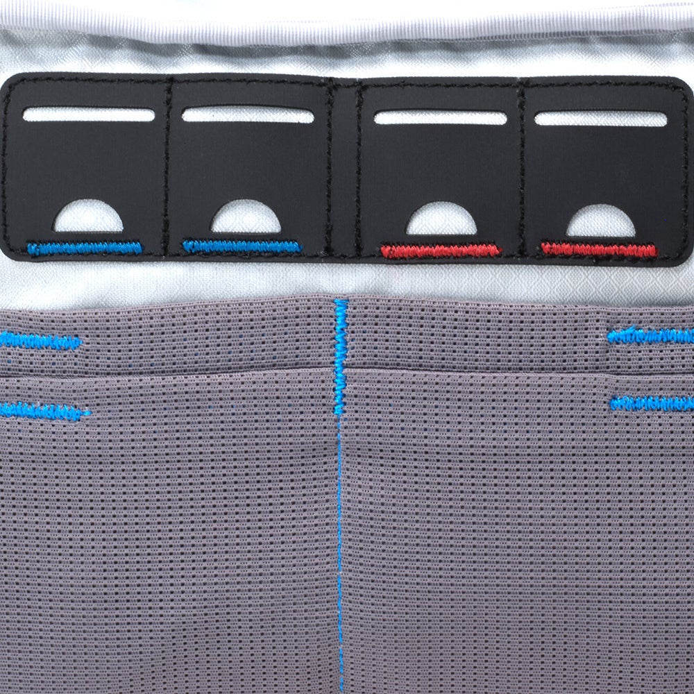 また、メインコンパートメントのジッパーが意図せず開いているときにすぐに気づけるよう、ジッパー裏側には目につきやすいブルーの下地を採用しています。