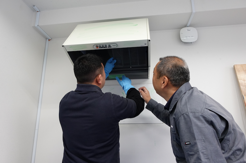 このたび新設した「アクシア総合技術センター」は、旧各社が有していた技術を集約し、建物維持管理業務に関する知識の習得、技術の向上を図る研修施設となります。施設内では、各種清掃業務、レンジフード等の住設機器の解体・取付・清掃、クロス再生洗浄・張替え、等の研修が実施可能となっております。