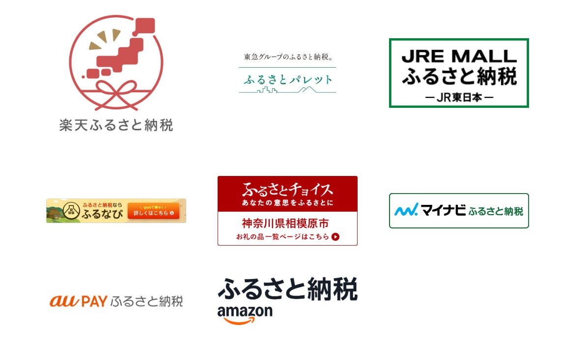新たにauふるさと納税とAmazonふるさと納税を加えた、8つのサイトからご購入いただくことができます。ふるさと納税に関する詳細情報につきましては、以下を参照ください。