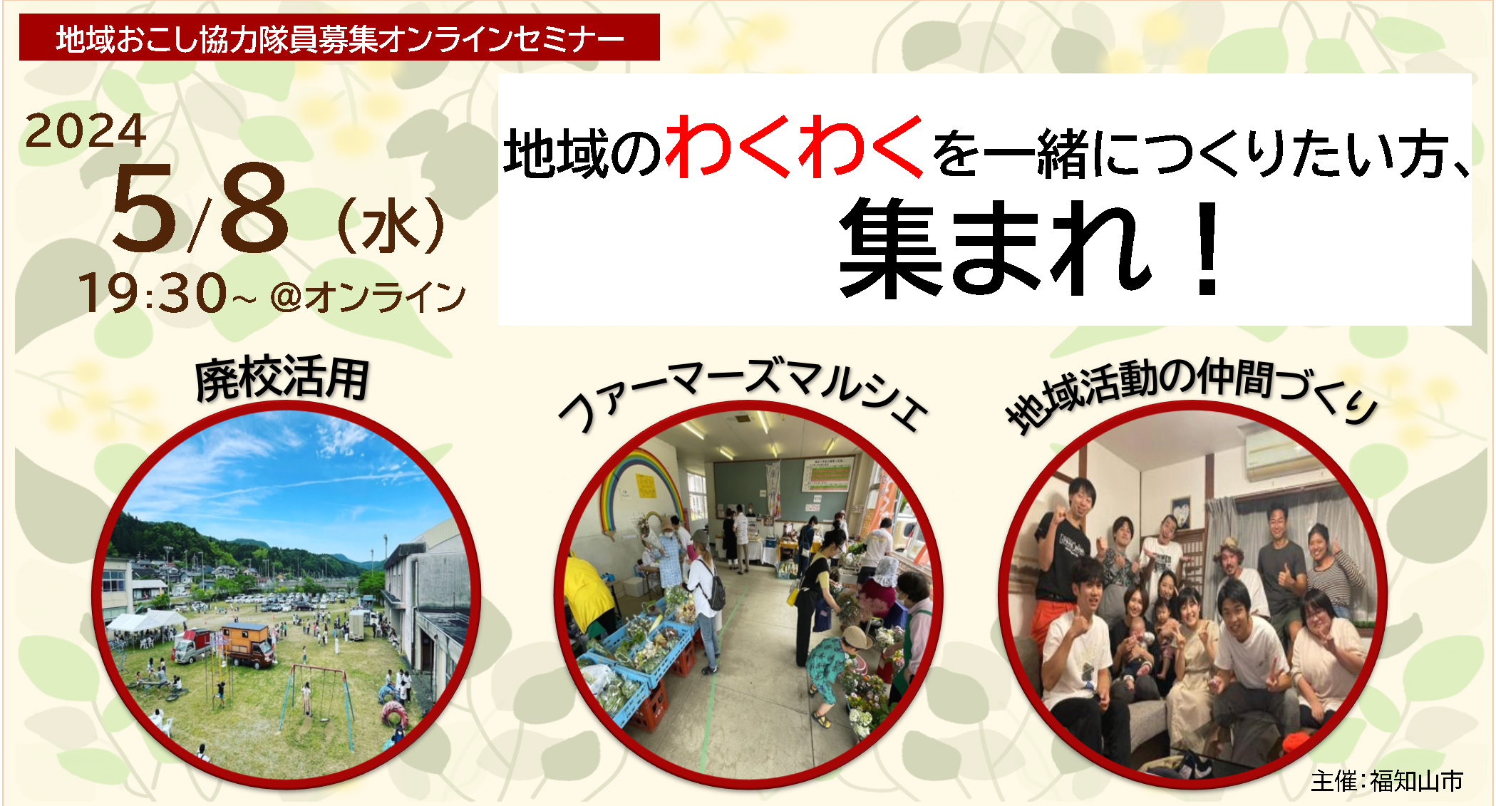 地域おこし協力隊員募集オンラインセミナー | 5月8日(水) 19:30~20:30 |