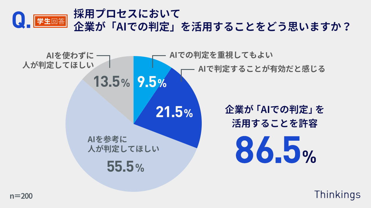 「採用でのAI活用」について知っている学生の86.5%が「AIでの判定」を活用することを許容