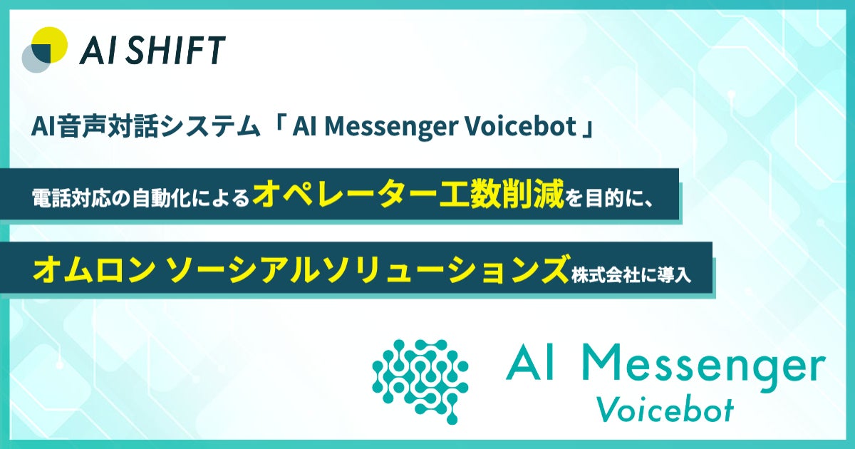 株式会社サイバーエージェント(本社:東京都渋谷区、代表取締役:藤田晋、東証プライム市場:証券コード4751)の100%子会社で、生成AIの導入を一貫してサポートする株式会社AI Shift(本社:東京都渋谷区、代表取締役社長:米山結人)は、AI自動音声対話システム「AI Messenger Voicebot」が、オペレーターの応対工数削減に向けて、オムロン ソーシアルソリューションズ株式会社に導入されたことをお知らせします。
