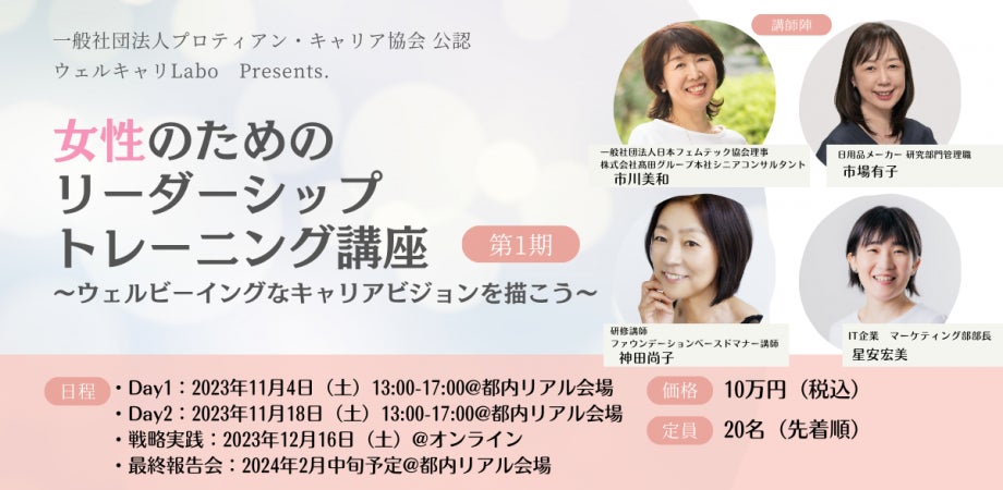 関連講座:【第1期生募集!】女性のためのリーダーシップトレーニング講座 ~ウェルビーイングなキャリアビジョンを描こう~