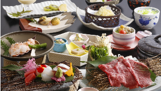 Point2.季節の創作会席料理+お宿自慢のお風呂付