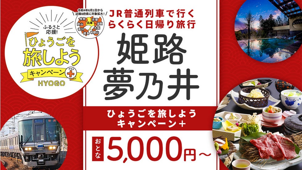 【兵庫県・滋賀県・京都府・和歌山県・奈良県・鳥取県・岡山県・徳島県・香川県在住限定】姫路 夢乃井日帰りプラン (ひょうごを旅しようキャンペーン+)