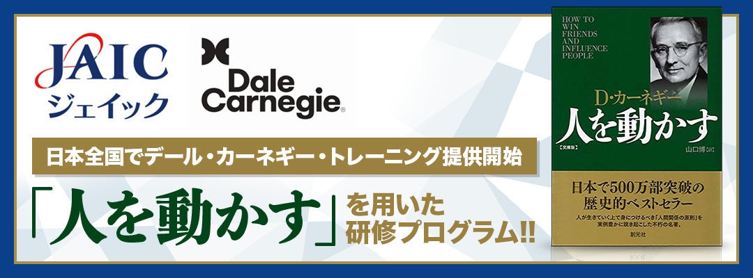 今回、デール・カーネギー・トレーニングの提供を開始するのは、『マネジメントの難易度が増している中で、日本の経営者や経営幹部、リーダー層に、オンライン時代の “人を動かす”リーダーシップ&コミュニケーションを学ぶ機会を提供したい』と考えたためです。デール・カーネギー・トレーニングは世界累計900万人の受講実績があり、デール・カーネギーの著書『人を動かす』『道は開ける』などは国内1,000万部を突破する歴史的ベストセラーです。こうした実績を踏まえ、デールカーネギー・アソシエイツ社とフランチャイズ契約を締結し、日本国内でデール・カーネギー・トレーニングを提供するに至りました。