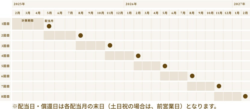※計算方法:100,000円(投資元本)×8.5%(年利)×3ヶ月÷12ヶ月=2,125円