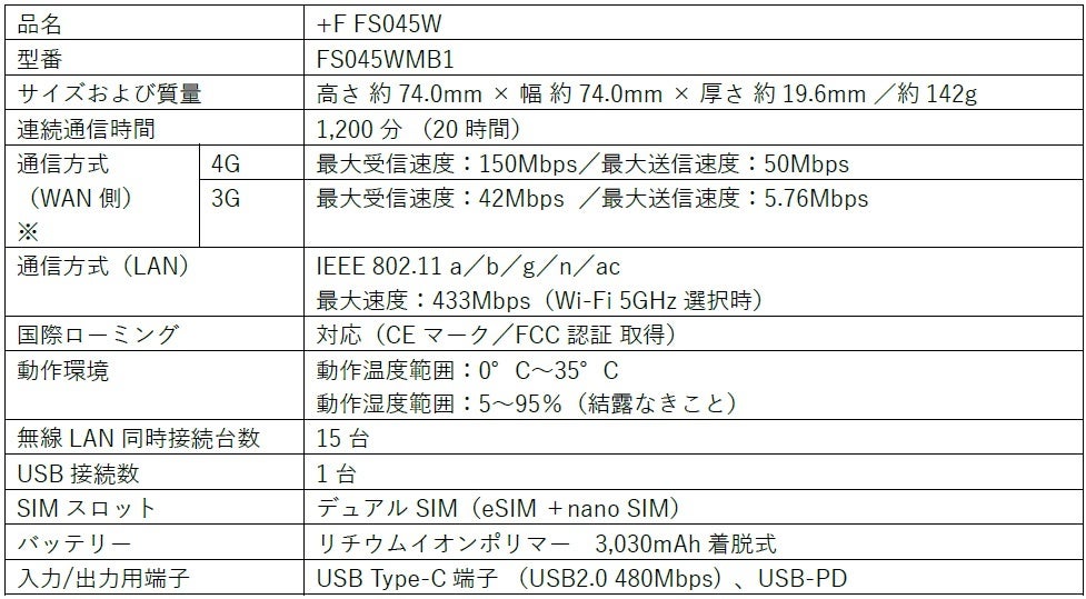 富士ソフト、eSIM対応4Gモバイルルーター「+F FS045W」を販売開始 人気の+Fシリーズ製品に海外でも利用可能なモバイルルーターの新機種が登場