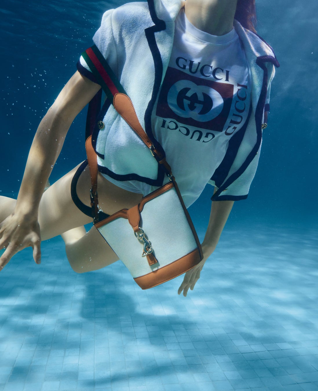 世界各地の有名リゾート地のグッチショップではGucci Lidoのエッセンスを生き生きと表現したポップインを展開します。ポルト・チェルボ(イタリア)、カプリ(イタリア)、ハンプトンズ(米国)、サントロペ(フランス)といったビーチリゾートの景色と雰囲気が、本コレクションの鮮やかなアイテムの魅力を引き立てます。このポップインでは、旅行者を