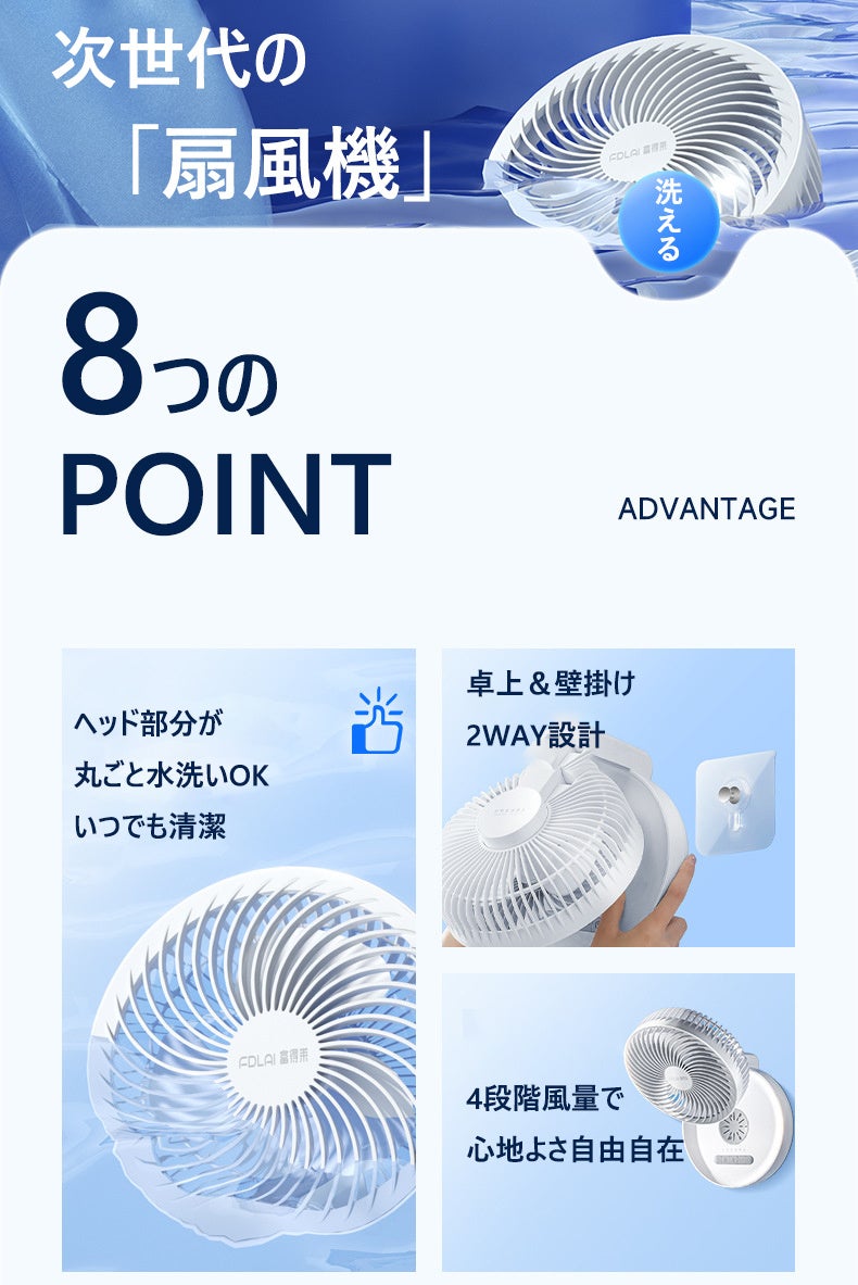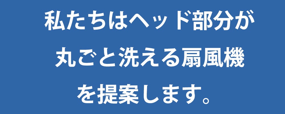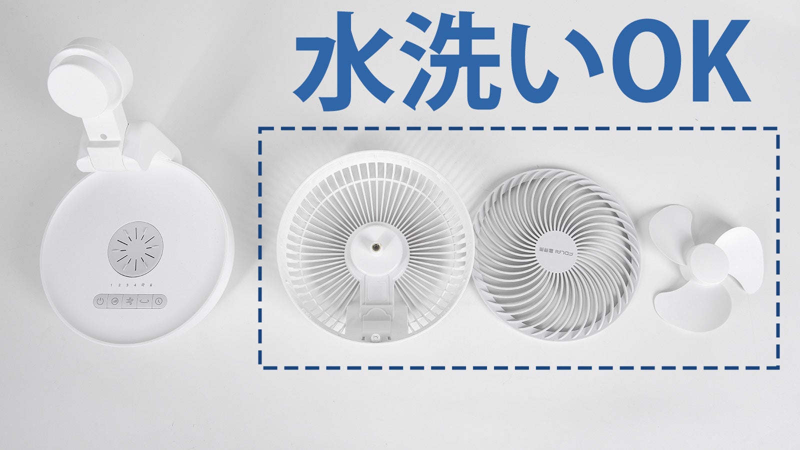 そのため、従来の扇風機のように複雑な内部機構や駆動部品がなく、工具不要で簡単に分解でき、ヘッド部分はまるごと水洗いが可能になります。