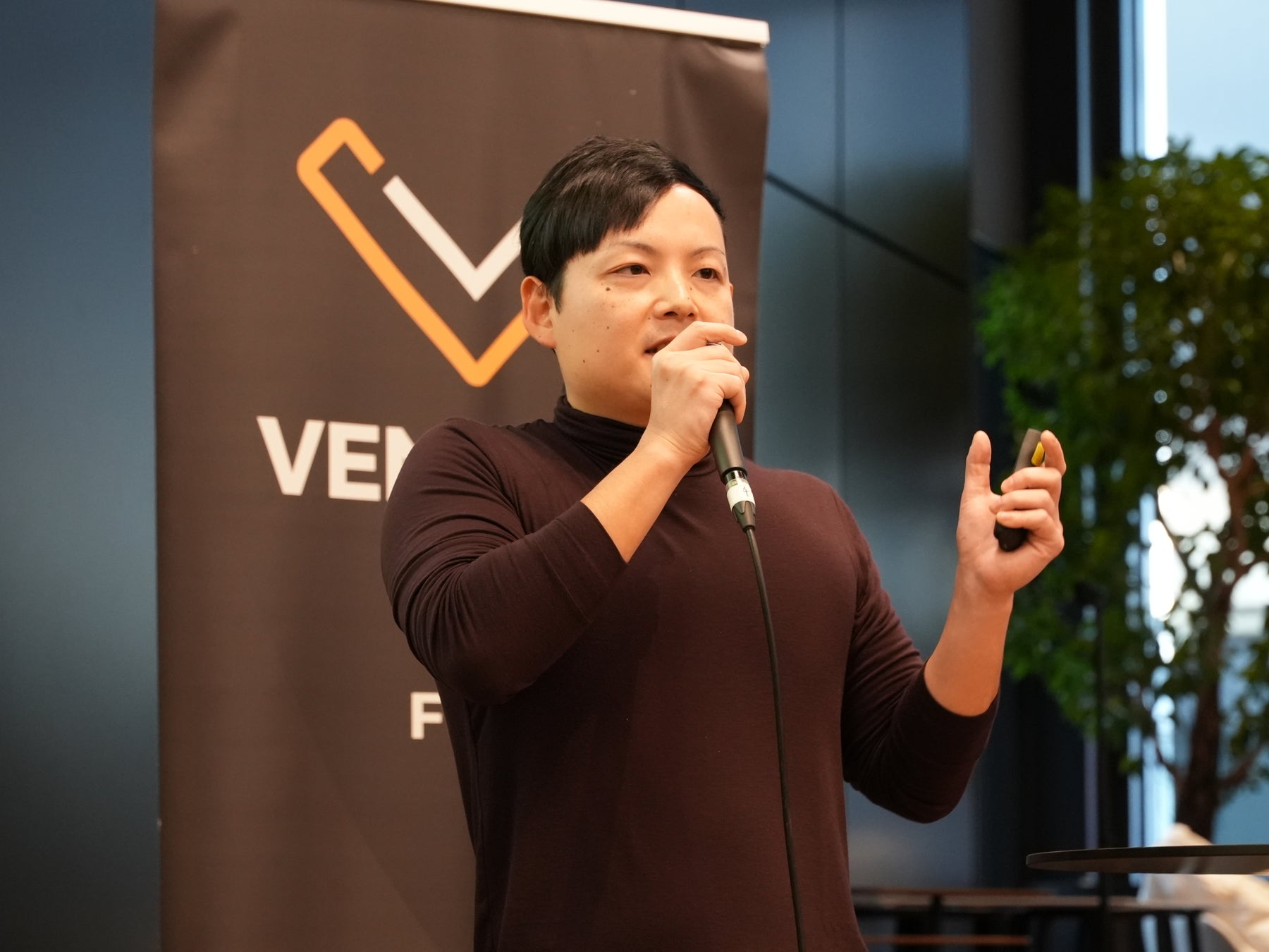 本イベントは、来年2月19日にVenture Caféが東京・虎ノ門で開催する国際ビジネスカンファレンス「Global Gathering 2026」の内で行われるピッチイベントの予選会として実施されました。170名以上が見守る中、九州・福岡を中心にグローバル展開を目指す計5組の起業家による英語での5分間ピッチが繰り広げられ、会場は大きな熱気に包まれました。