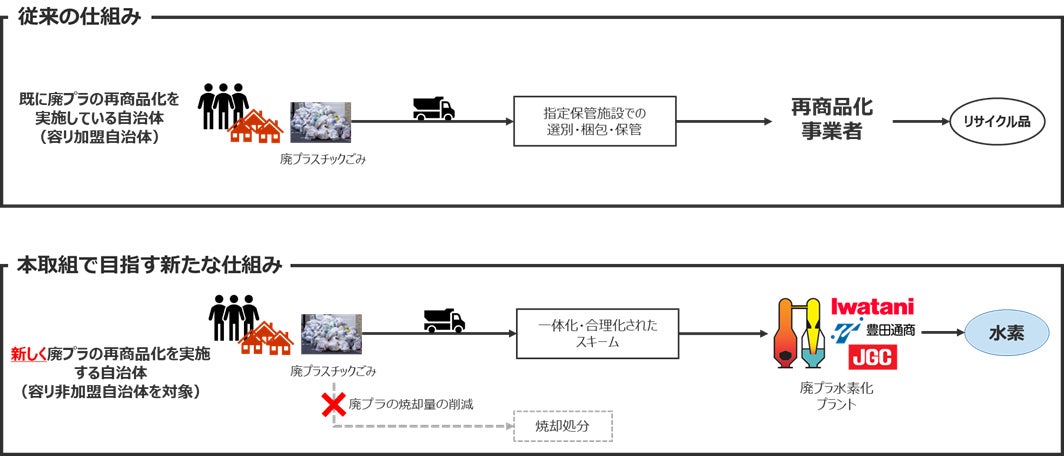 岩谷産業、豊田通商、日揮HDの3社は、自治体の皆さまとの今回の検討会発足により、本事業の重要な要素となる廃プラスチックの回収量確保を目指すとともに、本事業を通じて、脱炭素社会の実現や資源循環の促進に貢献していきます。