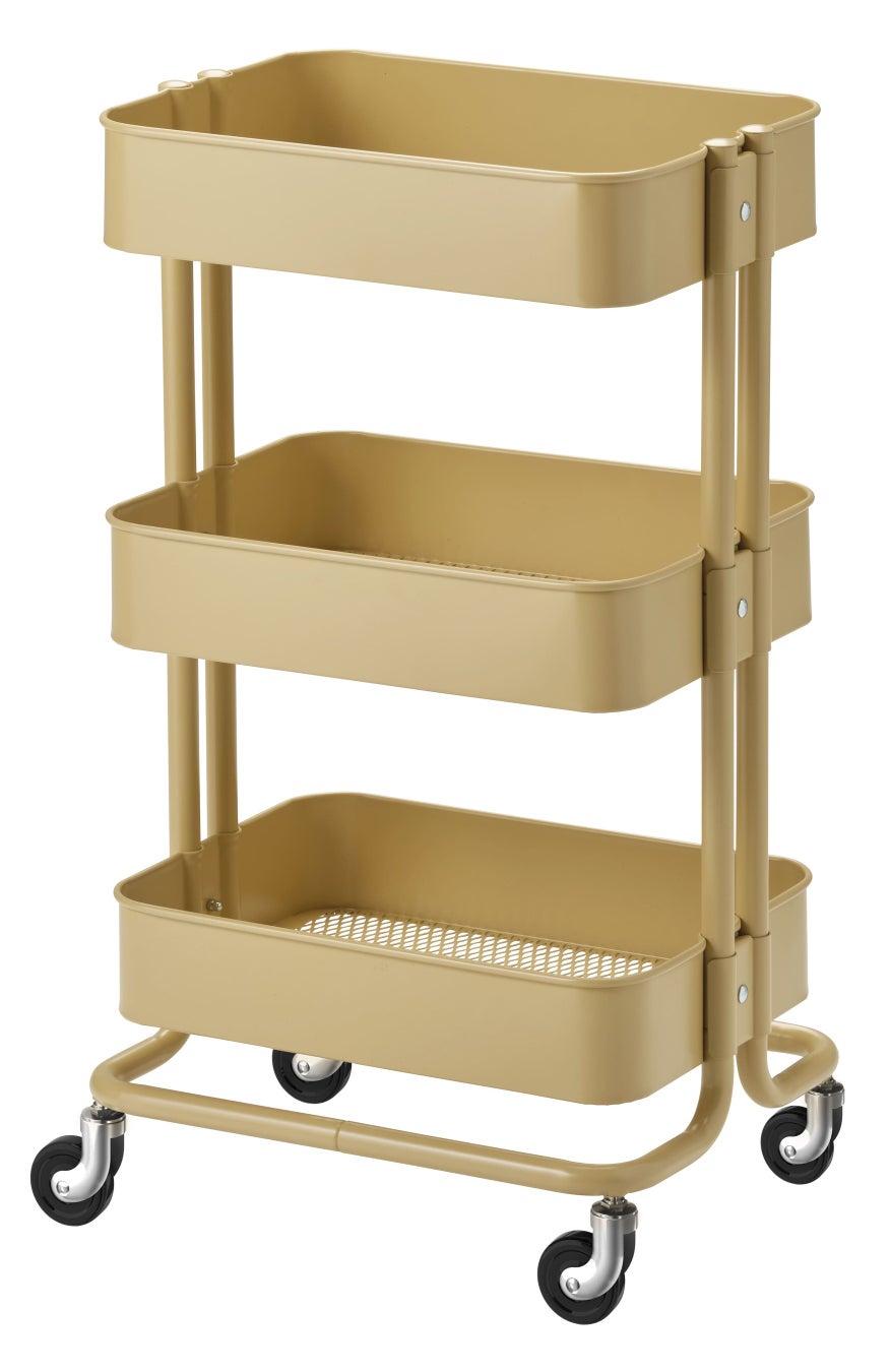 大人気のワゴンに新しい色が登場。キッチンやバスルーム、または追加の収納スペースが必要な場所にぴったりです。この頑丈なワゴンには、キャスターが4個付いているので、簡単に移動してお好きな場所で使えます。コンパクトサイズで狭いスペースにも設置できます。収納ニーズに合わせて、中段のシェルフの位置を調節できます。