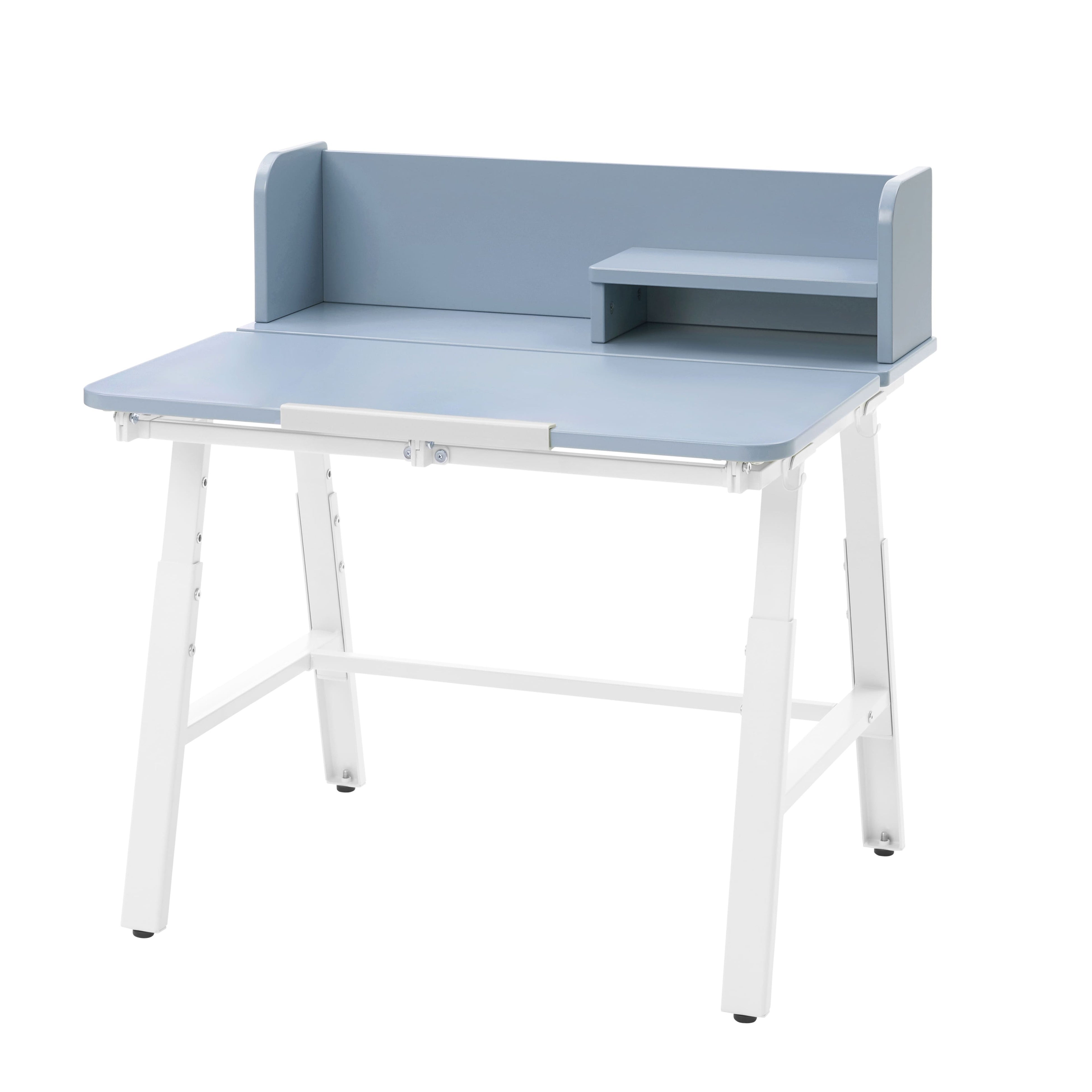 デスクの高さを5段階(50、56、62、68、74cm)に変えられます。身長115cm~180cmの人向けです。デスクトップをやや傾けることができるので、お子さまは作業内容に合わせた姿勢で作業できます。デスクを傾けたときに本が滑り落ちないように、デスクのフロントエッジにストッパーが付いています。収納エリアと棚があるので、お子さまが図画工作や宿題をするときに、手の届く場所に一番大切なものを置いておけます。テーブルの両側にあるフック2個にバッグやヘッドホンなどの必需品を掛ければ、すぐ手が届きます。