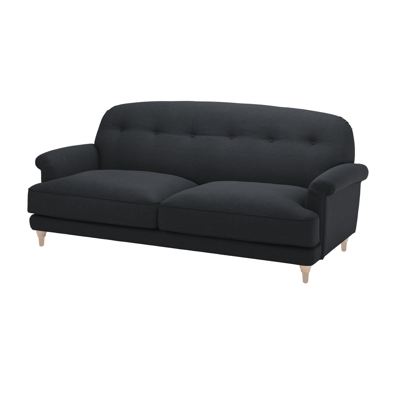 上品なトラディショナルデザインのソファです。丸みのあるやや低めのアームレストは腕をのせても頭をのせても快適です。高めの背もたれは、首と背中の両方を心地よく支えます10年品質保証付き。