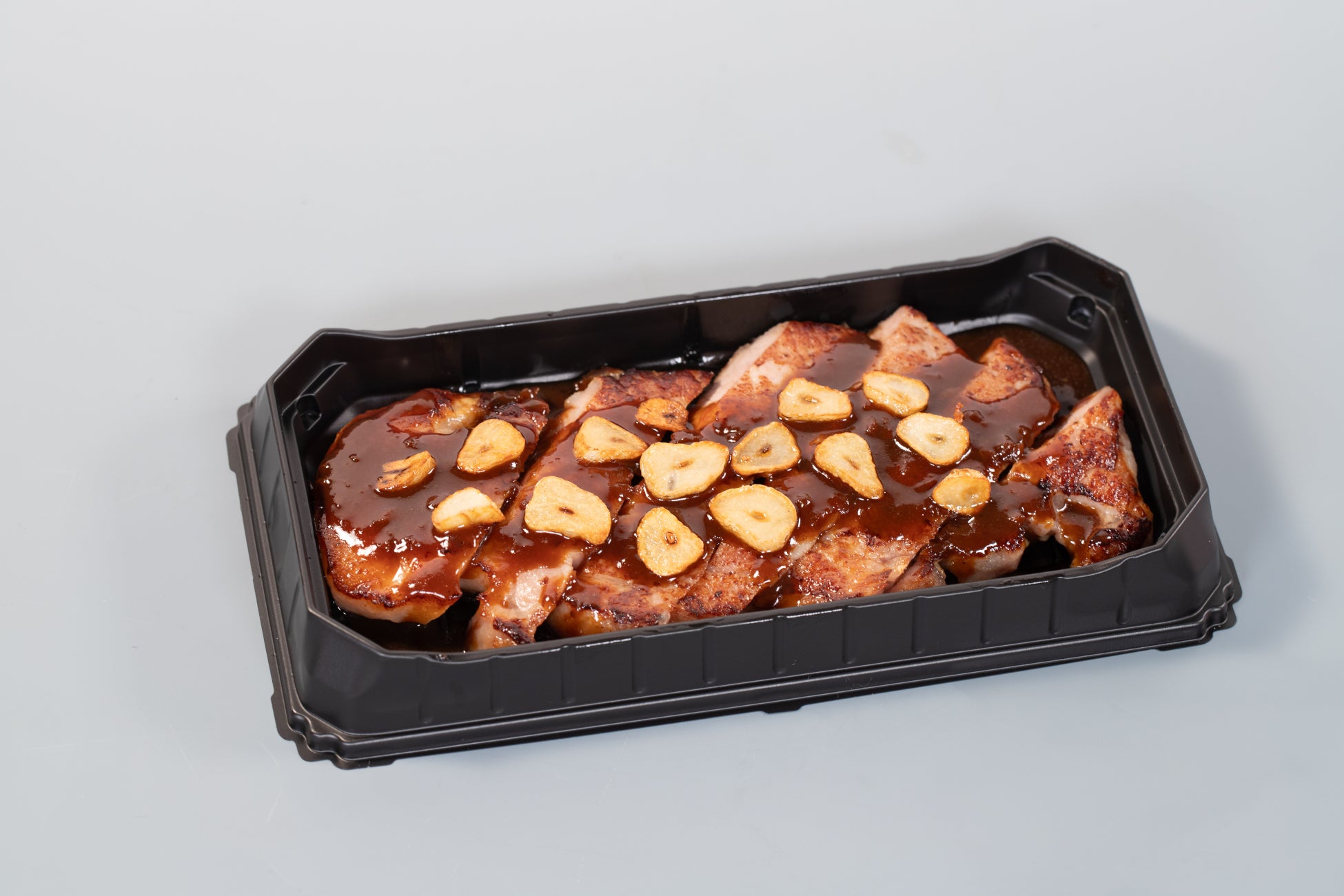 雪国育ちの甘味たっぷりの脂と柔らかな肉質が特徴の国産豚を150g使用したボリューミーな商品。松屋オリジナルトンテキダレを使用し、ご飯が進む味わいです。青森県産にんにくを使用したフライドガーリックのトッピングがアクセントに。