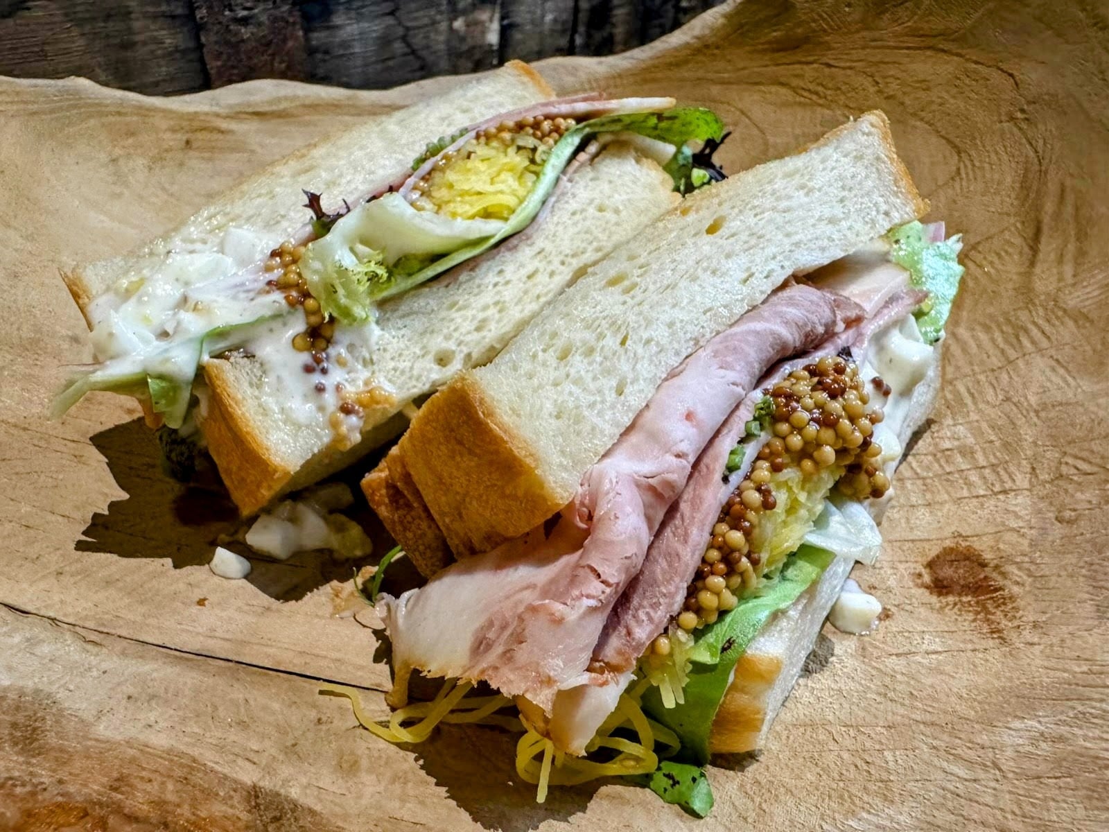 地元”秩父“で育てた野菜と埼玉県産武州豚のロースハムに特製のマスタードを合わせた自然の恵みを存分に味わえるサンドイッチです。