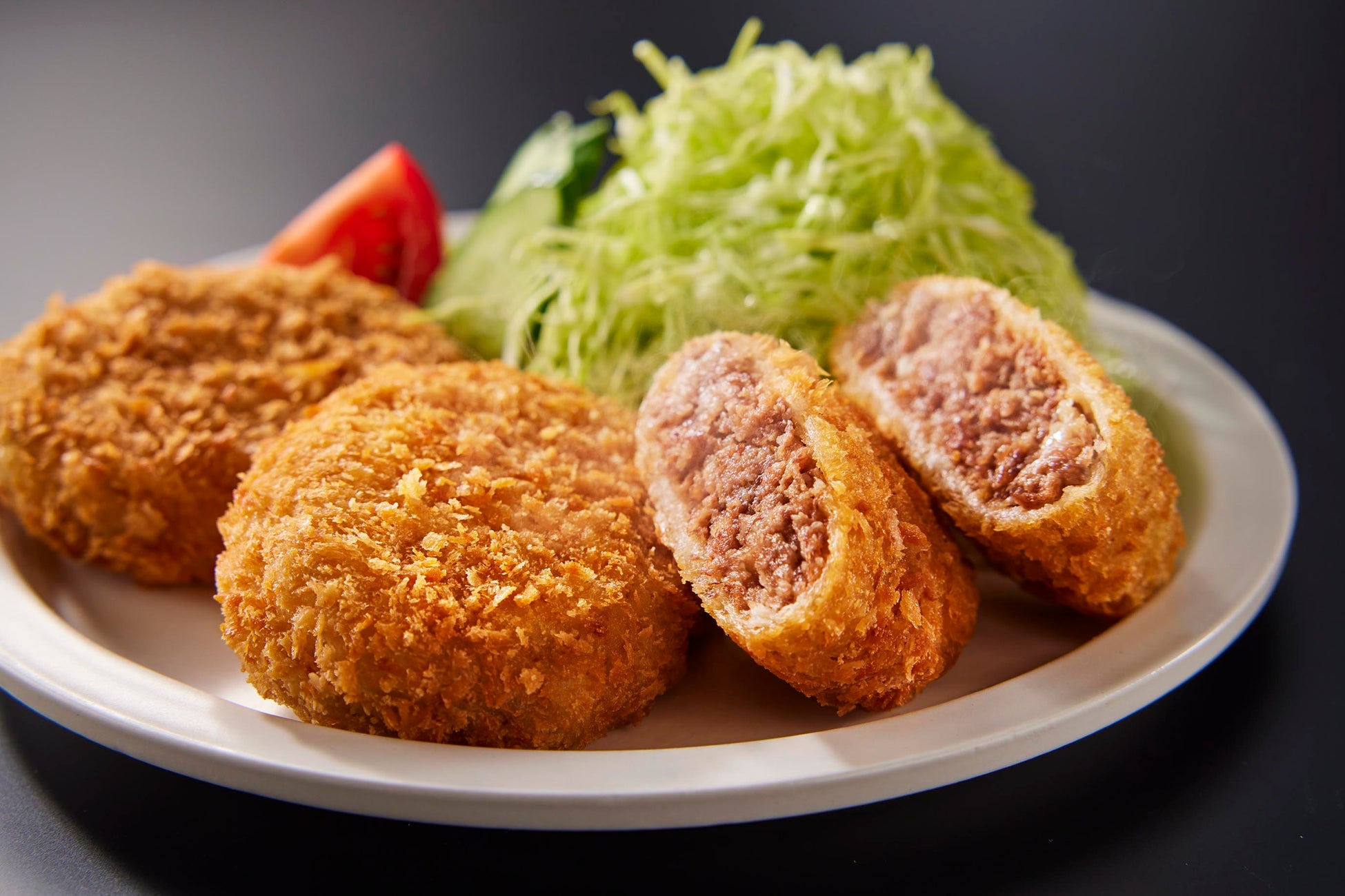 1924年精肉店として創業し、東京肉食市場仲卸でもある肉の目利きが営むすき焼き割烹、銀座吉澤の松阪牛 A5 ランクを 100%使用して作り上げた、特別なメンチカツ。噛めば噛むほど溢れ出す肉汁が素材本来の旨味と甘味を感じさせます。