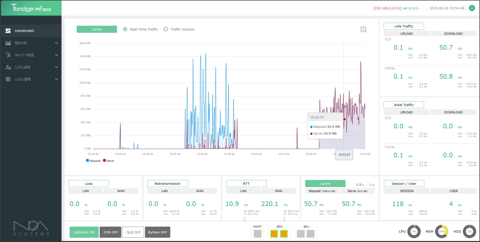 今回のバージョンアップは、長期休暇明けや一斉起動時に通信帯域を圧迫しやすいWindows UpdateやChrome OS Upateをキャッシュ対象に加えることで、「エッジキャッシュ機能」によるインターネット回線負荷の軽減効果を高めることを目的としています。また、キャッシュされた通信の分析結果をより詳細かつ視覚的に分かりやすく表示することで、ネットワーク管理者が状況を迅速に把握し、適切な対策を講じられるよう支援いたします。