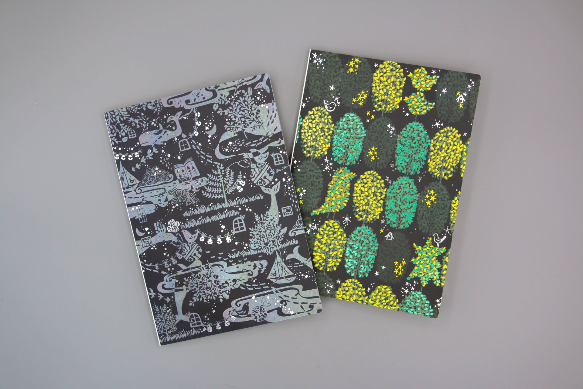 新柄「木」「鯨法会」の2柄を加えた「ぽち袋」「しおり」「A5サイズ無地ノート」「マスキングテープ」が登場!※写真左より「鯨法会」右が「木」となっております
