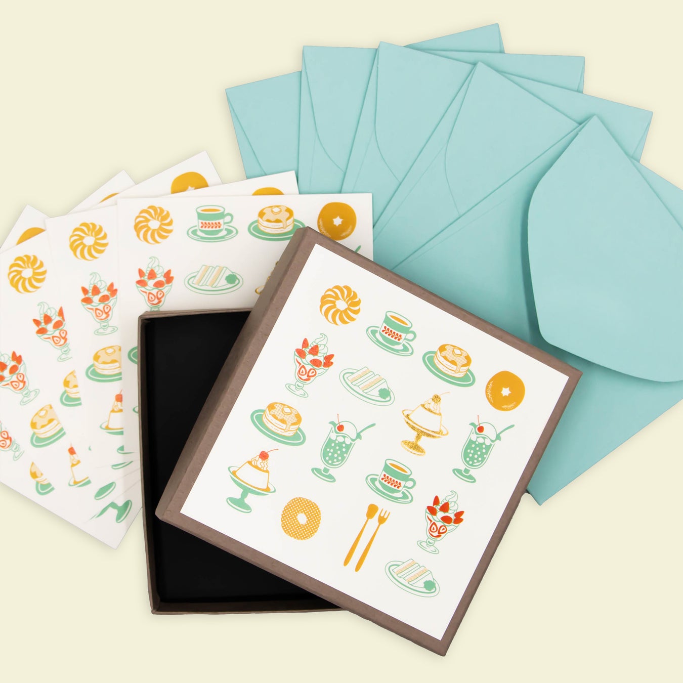 箔押しのワンポイントが光る、ボックスに入ったメッセージカードと封筒のセットです。