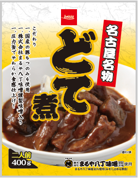 国産の豚もつの柔らかい食感と濃厚なコクと赤味噌の辛味を味わえる、こだわりのどて煮です。味の決め手となる味噌は、岡崎市に本社のある㈱まるや八丁味噌の謹製味噌をブレンドしました。何度も試行錯誤を重ね、店舗従業員と一緒に作り上げた逸品です。温めてそのまま、ご飯に乗せて「どてめし」、うどんと一緒に煮込んで「味噌煮込みうどん」などアレンジも色々楽しめます!