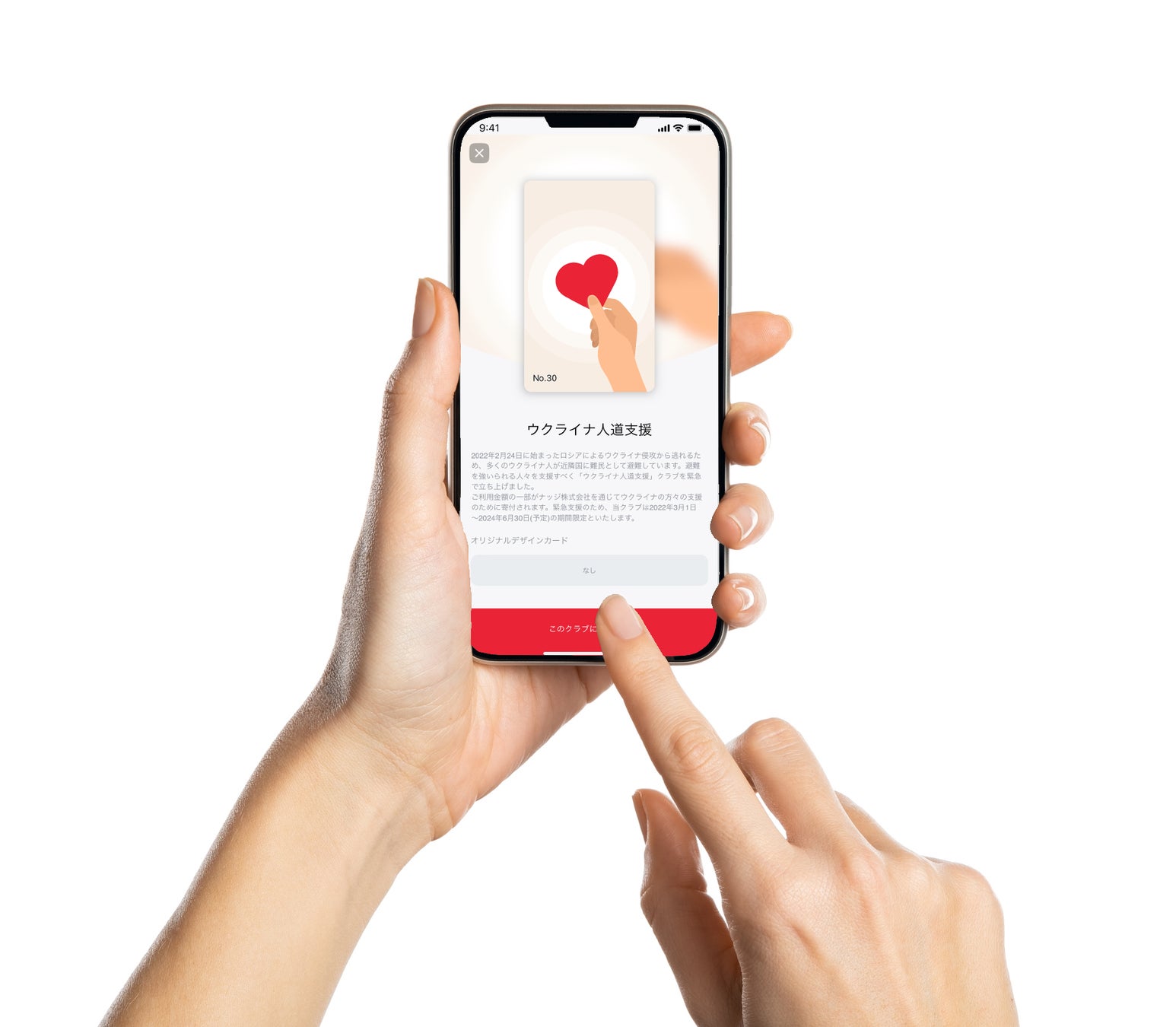 【支援方法】ナッジカードアプリより「ウクライナ人道支援」クラブに入会し、普段のお買い物でナッジカードを利用する