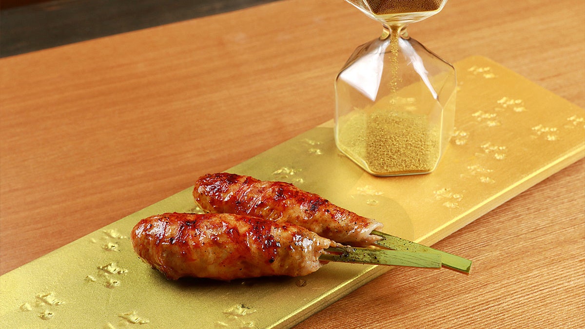 名物「 賞味期限59秒の生つくね 」―― 網脂で包んだ旨み凝縮の逸品。
