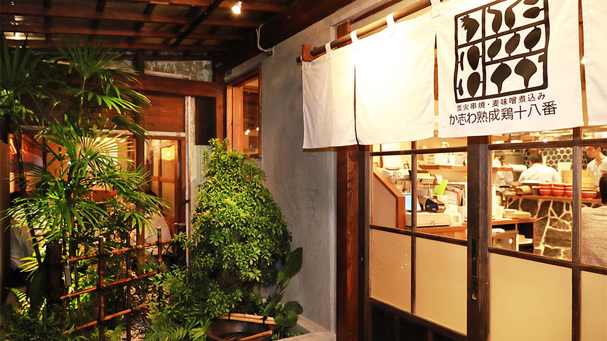 古民家が持つどこか懐かしい温もりに、近代を融合させた空間は、大人がゆったりと心をほどける場所。自慢の焼き鳥をはじめ、大釜でじっくり煮込む黄金出汁のおでんなど、五感で楽しめる料理とともに、元気いっぱいのスタッフが心を込めてお迎えいたします。