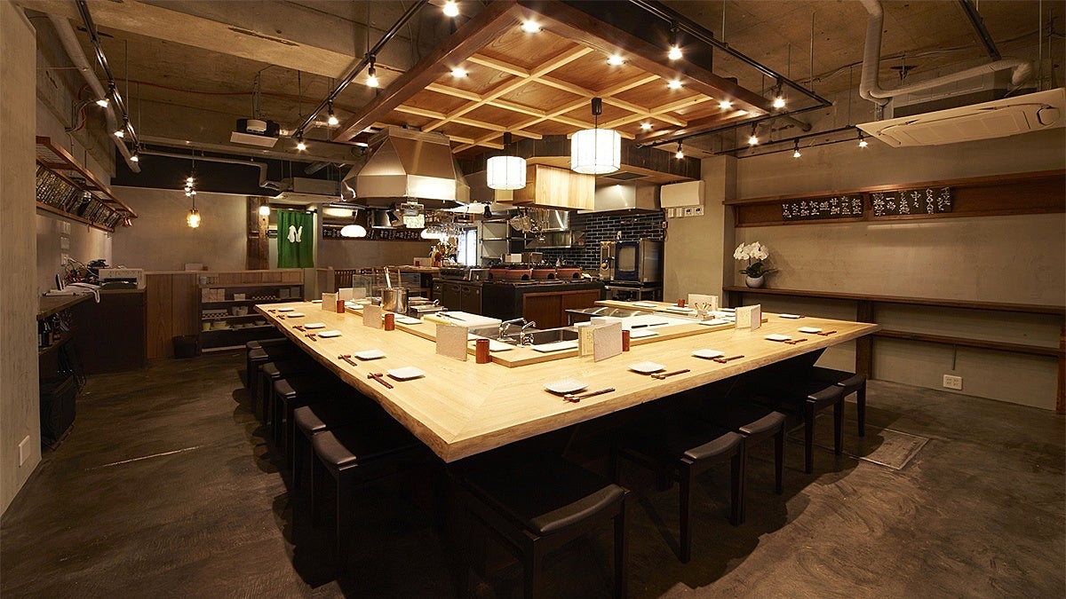 店主自ら豊洲市場で目利きした鮮魚をはじめ、旬の素材を多彩な技法で仕立てた和の一皿をお届け。鮮度抜群の鮮魚は刺身や天ぷらに。また、趣向を凝らしたおばんざい、こだわりの版築かまどで炊き上げた、本格釡炊き御飯など、四季折々の味わいを、コの字型カウンター越しに楽しむ臨場感あふれるひとときを。目の前で繰り広げられる職人の技を、五感で味わうカジュアル割烹です。