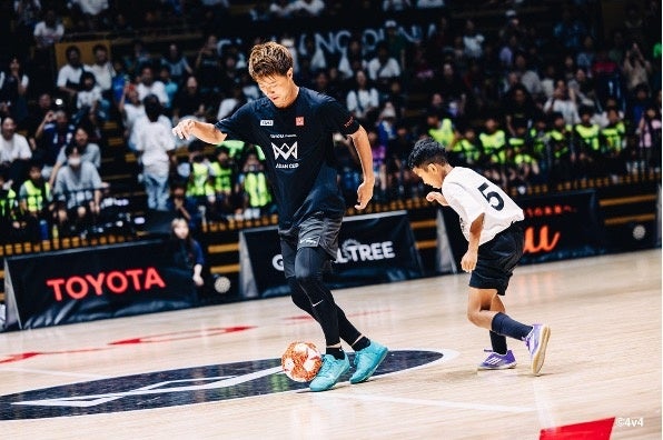 「4v4」とは日本のサッカー界をさらに盛り上げるべく、サッカー界の本田圭佑が考案した新しい4人制サッカーです。本大会は「サッカーの世界大会を全ての子どもに」というミッションのもと、育成年代の小学生の子ども(U10、U12)向けに2023年に開発されました。