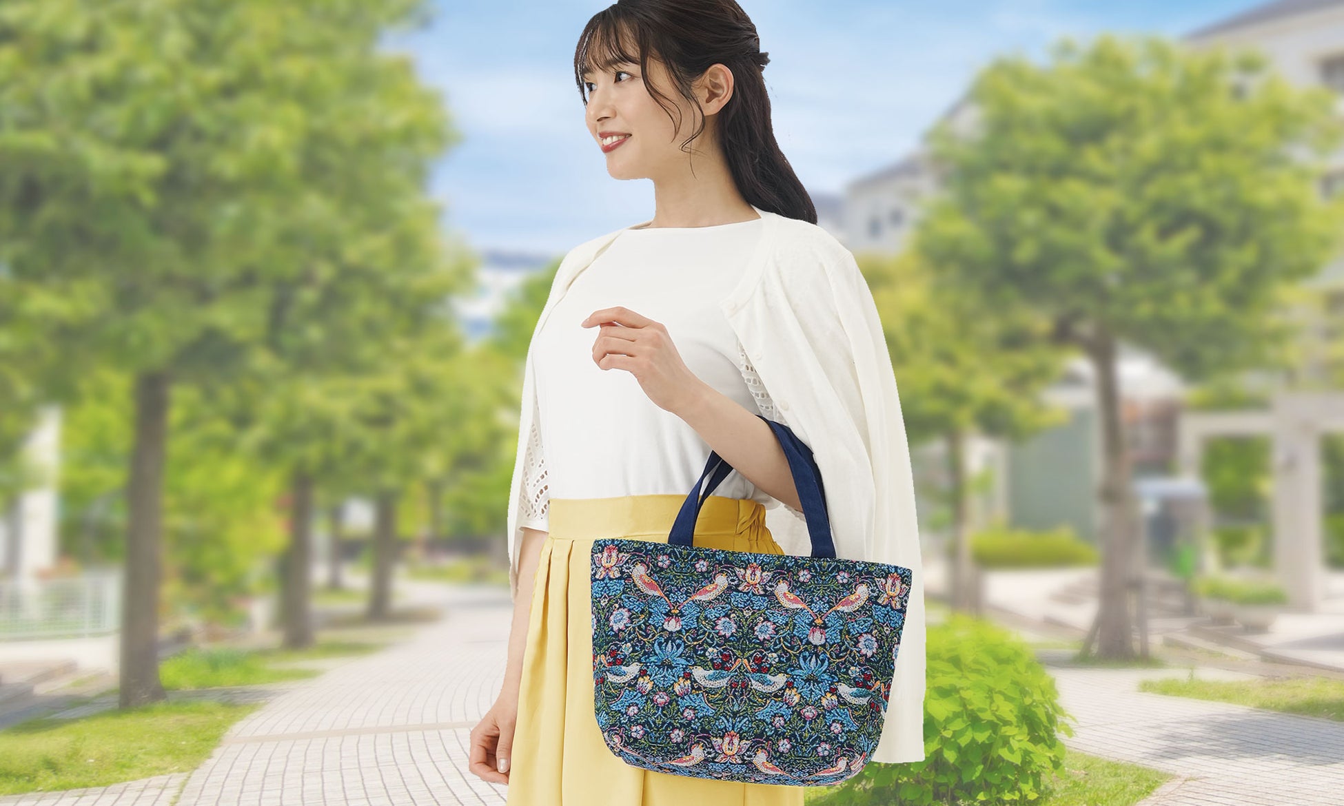 ウィリアム・モリスの「いちご泥棒」が高級感のある華やかなジャガード織りの手提げバッグ