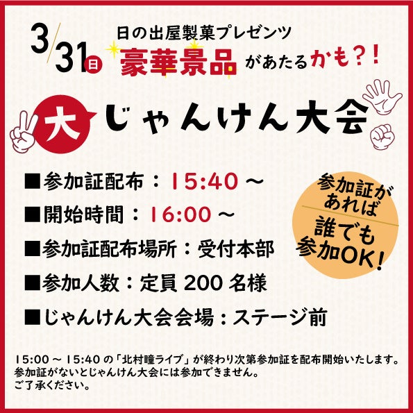 16:00~ 日の出屋製菓プレゼンツ「大じゃんけん大会」