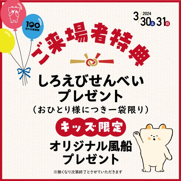 100周年を記念した豪華なしろえびせんべい3種類入った「百祭」や、お楽しみ袋なども多数揃えております。