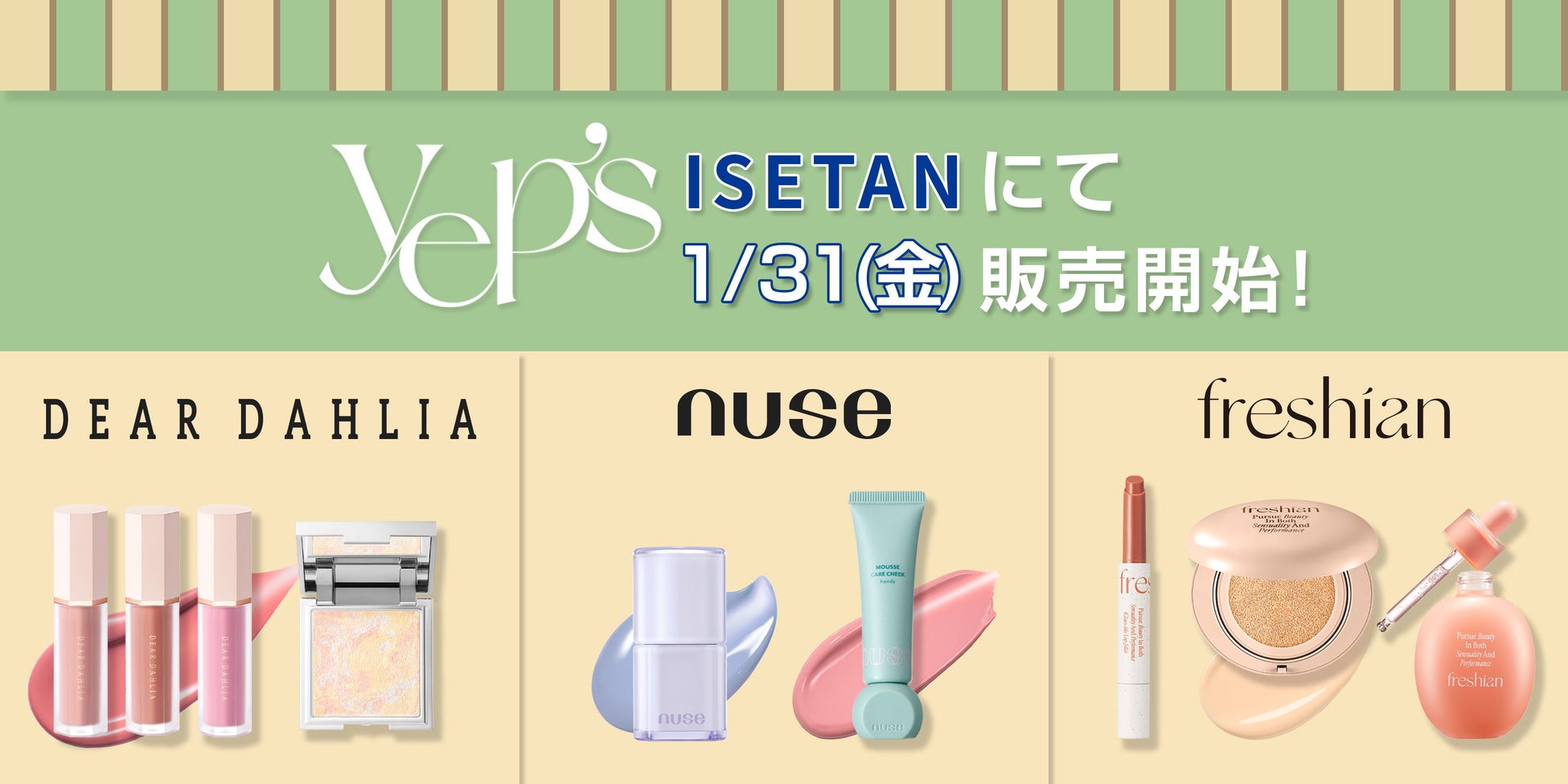 韓国コスメブランド「nuse(ヌーズ)」「DEAR DAHLIA(ディアダリア)」「freshian(フレシアン)」が2025年1月31日(金)よりYep's by SEEDS MARKET 伊勢丹新宿店 本館1階、及び公式通販サイトにて販売を開始いたしました。